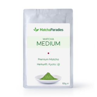 Matcha-Pulver kaufen, das sich zum puren Trinken oder zum Mischen eignet? Lernen Sie Matcha Medium kennen: ein japanisches Matcha-Pulver, das Sie pur als Tee trinken oder einfach mit anderen Zutaten mischen können. Unsere Lieblingsanwendung für dieses Matcha-Pulver ist die Matcha Latte!